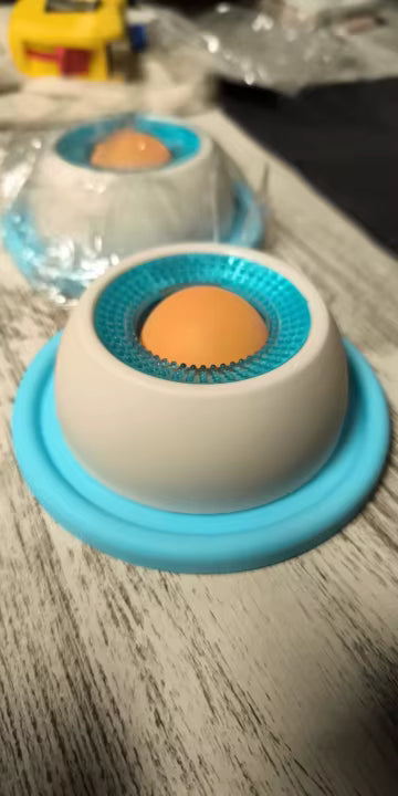 Unscrew → add a spreadable treat → screw back → place the ball → let your dog lick. Use it before trigger moments (leaving, storms, grooming) to build a calming routine.