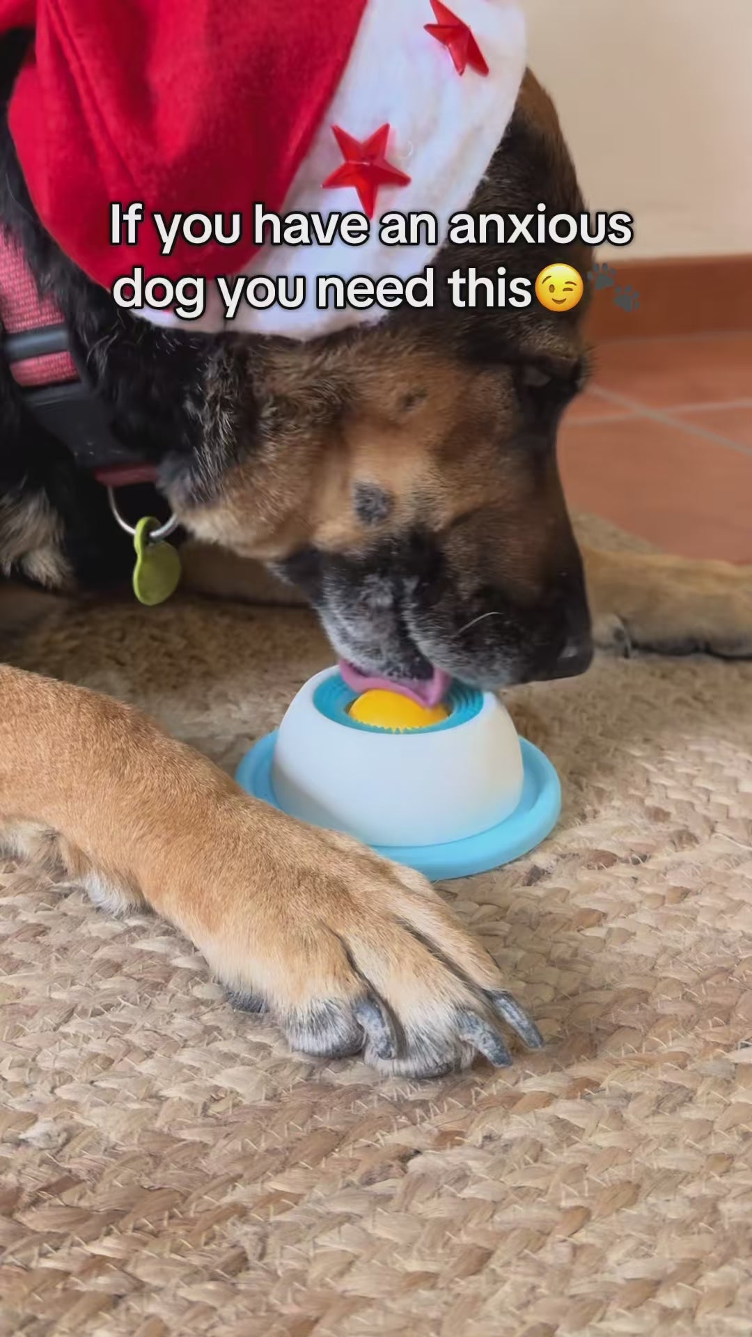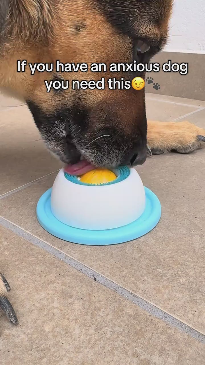 Turn licking into a calming ritual that helps your dog relax, stay focused, and eat slower; especially before you leave the house.
